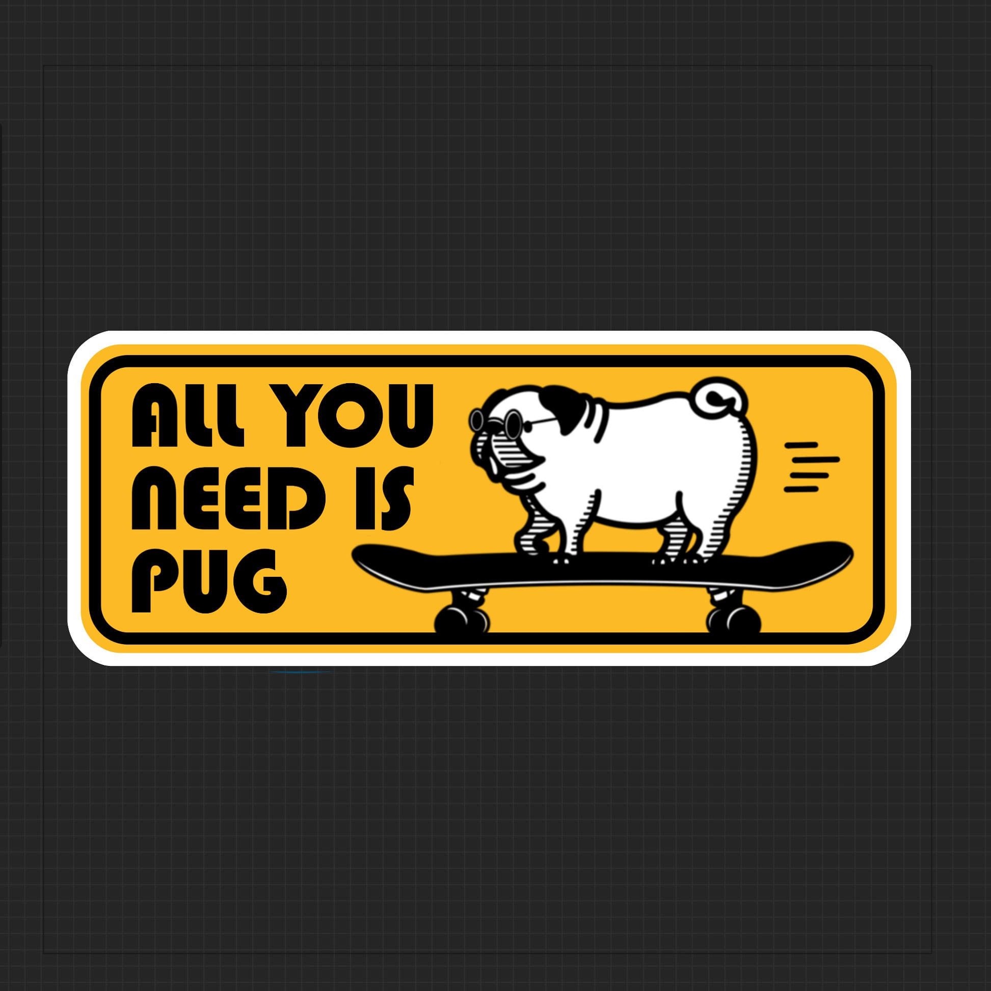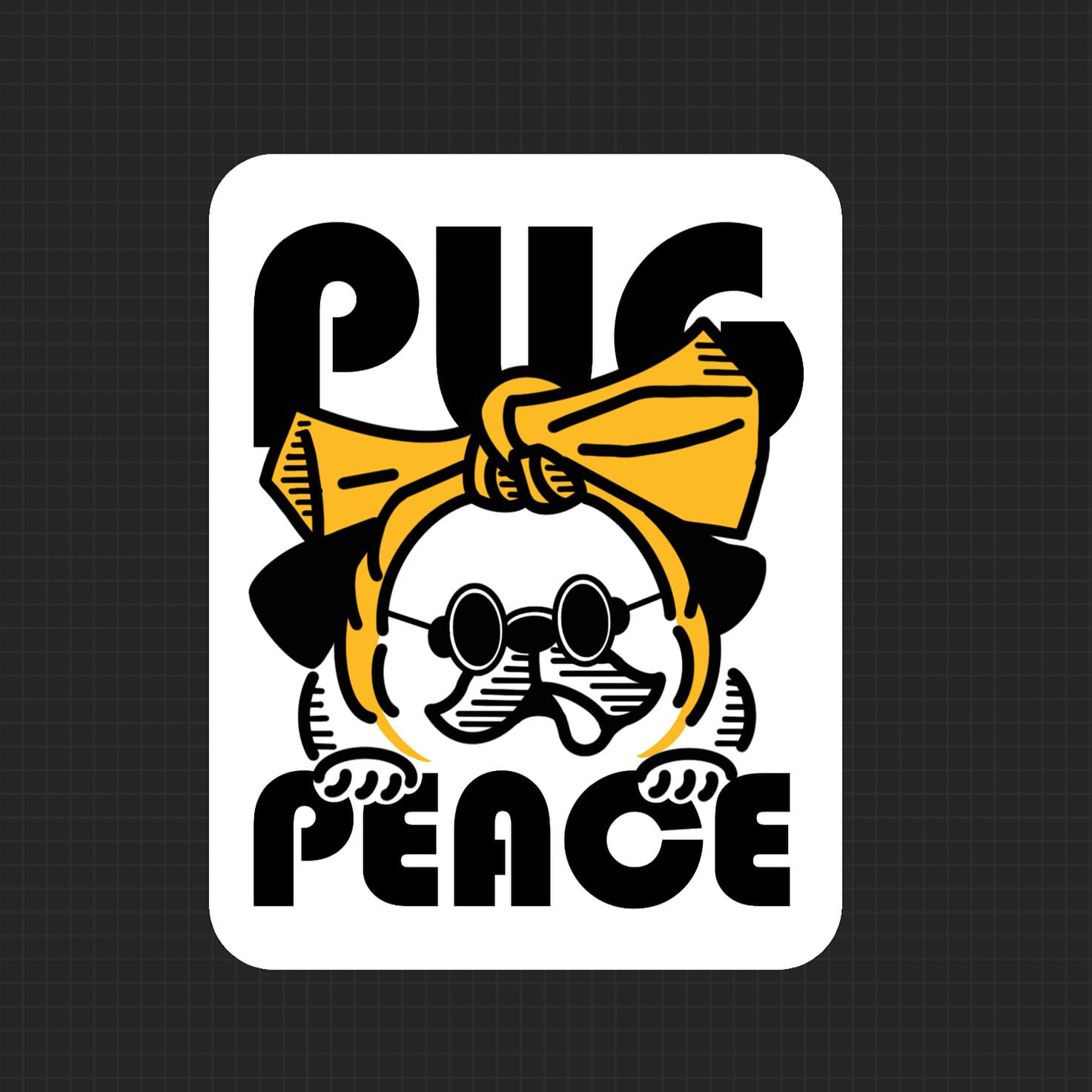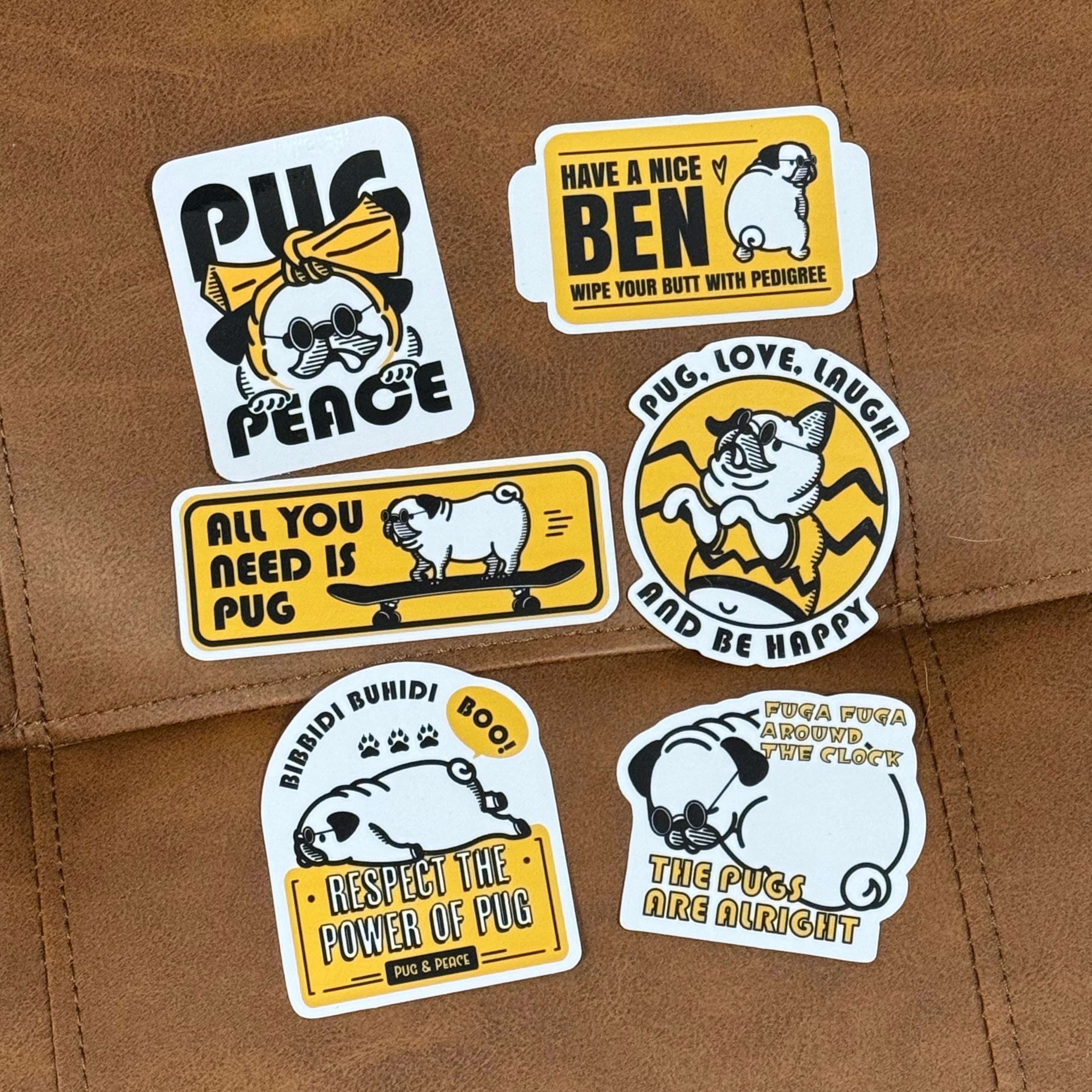 大人気グラサン・パグがステッカーになりました。白×黒×黄で統一したデザインのステッカー6点セットとなります。シンプルな色使いのため、パソコンやタブレット、小物等にも合わせやすいステッカーです。