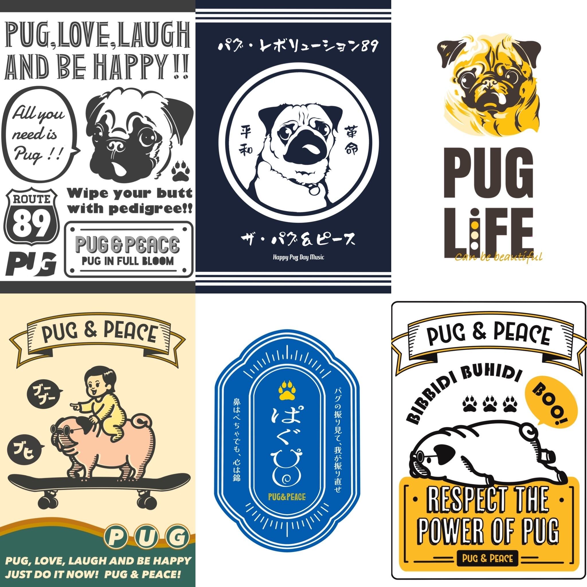 Pug & Peaceオリジナルデザインの光るミニチュア看板です♪